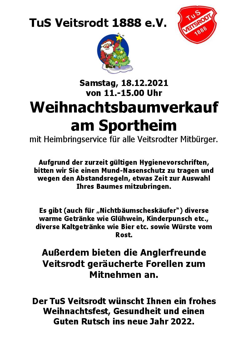Aufgrund der Entwicklung der Corona-Lage hat sich die Vereinsgemeinschaft Veitsrodt dazu entschieden, den für Samstag 18.12.21 geplanten Weihnachtsmarkt in der Markthalle abzusagen.