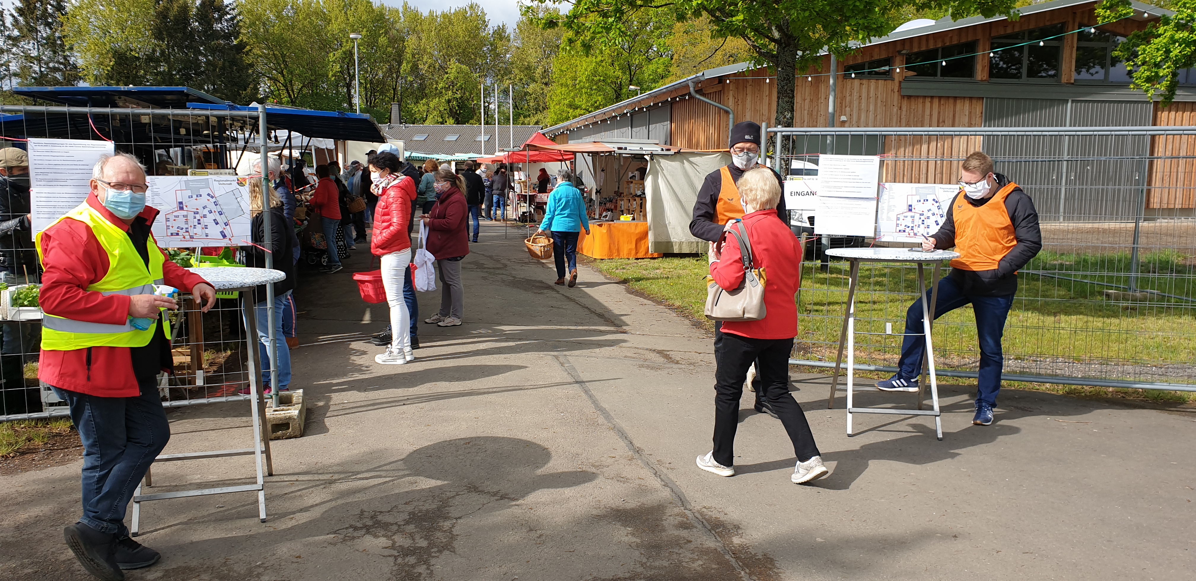 Der Regional-Markt findet am Samstag, den 2.5.2020 von 10.00 bis 15.00 Uhr -in abgeänderter Form / ohne Bewirtung - statt. Dem Wunsch vieler Besucher und vor allem der Beschicker tragen wir hiermit Rechnung, da vor allem die Produzenten landwirtschaftlicher Produkte den regionalen Absatzmarkt dringend benötigen. Der Markt findet nicht in der Markthalle sondern auf dem benachbarten Marktgelände – „Unter den Eichen“ - statt. Das Gelände ist abgegrenzt und hat einen Eingang und einen Ausgang. Die dort stehenden Händedesinfektionsmittel sind zu benutzen. Das Tragen von Mundschutzmasken wird empfohlen. Die Verkaufsstände werden an einem Rundweg aufgestellt. ‚Begegnungsverkehr‘ soll nicht stattfinden. Es gibt keine Beköstigung, der Verzehr von Waren jeglicher Art ist vor Ort untersagt. Es werden keine Sitzgelegenheiten angeboten die Sanitär- / Toilettenanlagen bleiben geschlossen. Wir wünschen, dass sich alle Besucher an diese der Zeit geschuldeten Regeln halten und dass wir mit dieser Übergangslösung zur Markthaltung etwas Hoffnung und Perspektive in unser aller Zusammenleben bringen.